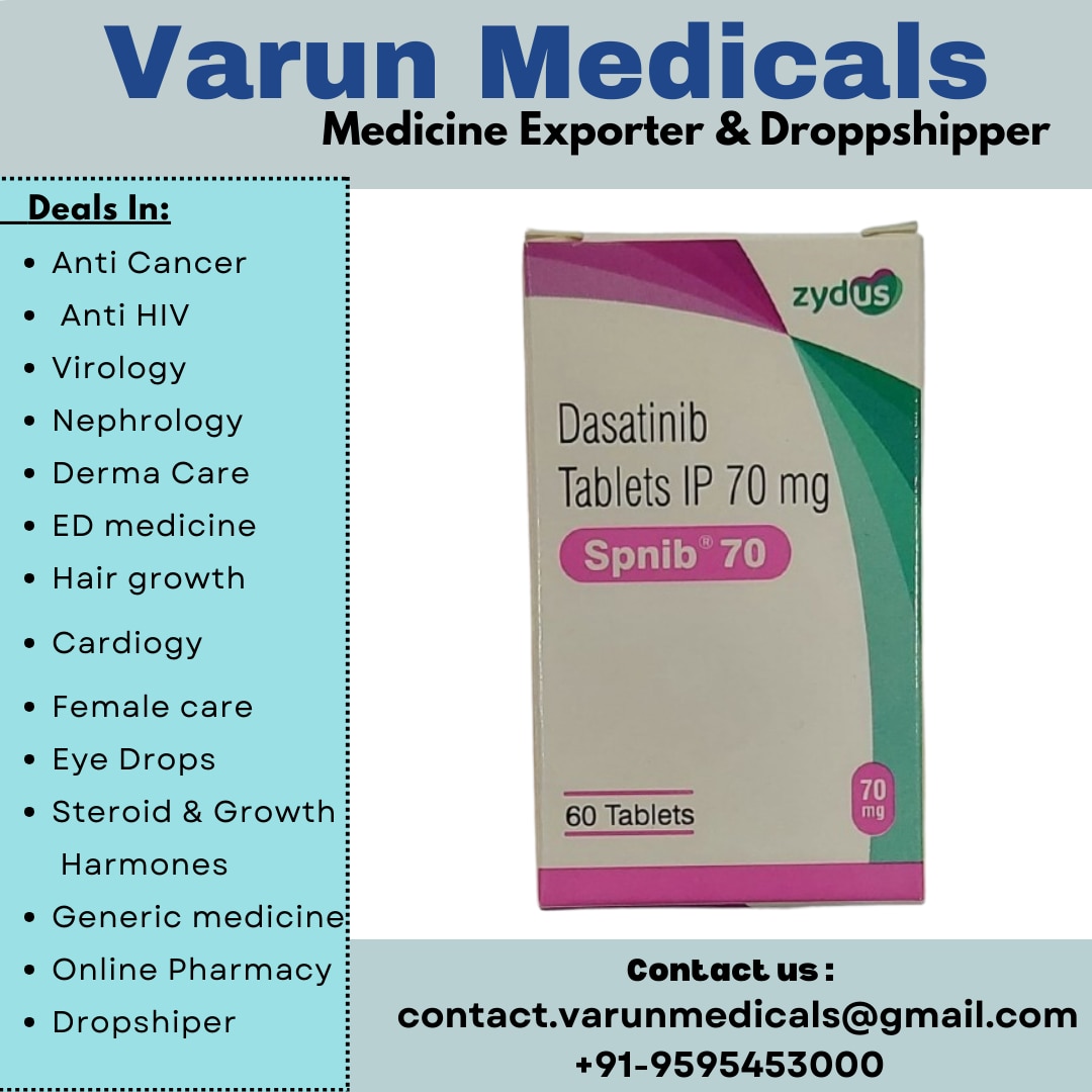 Spnib 70 mg used in the treatment of blood cancer (chronic myeloid leukaemia). It is used in patients whose disease could not be treated with other medications for leukaemia or who cannot take these medications because of side effects.
