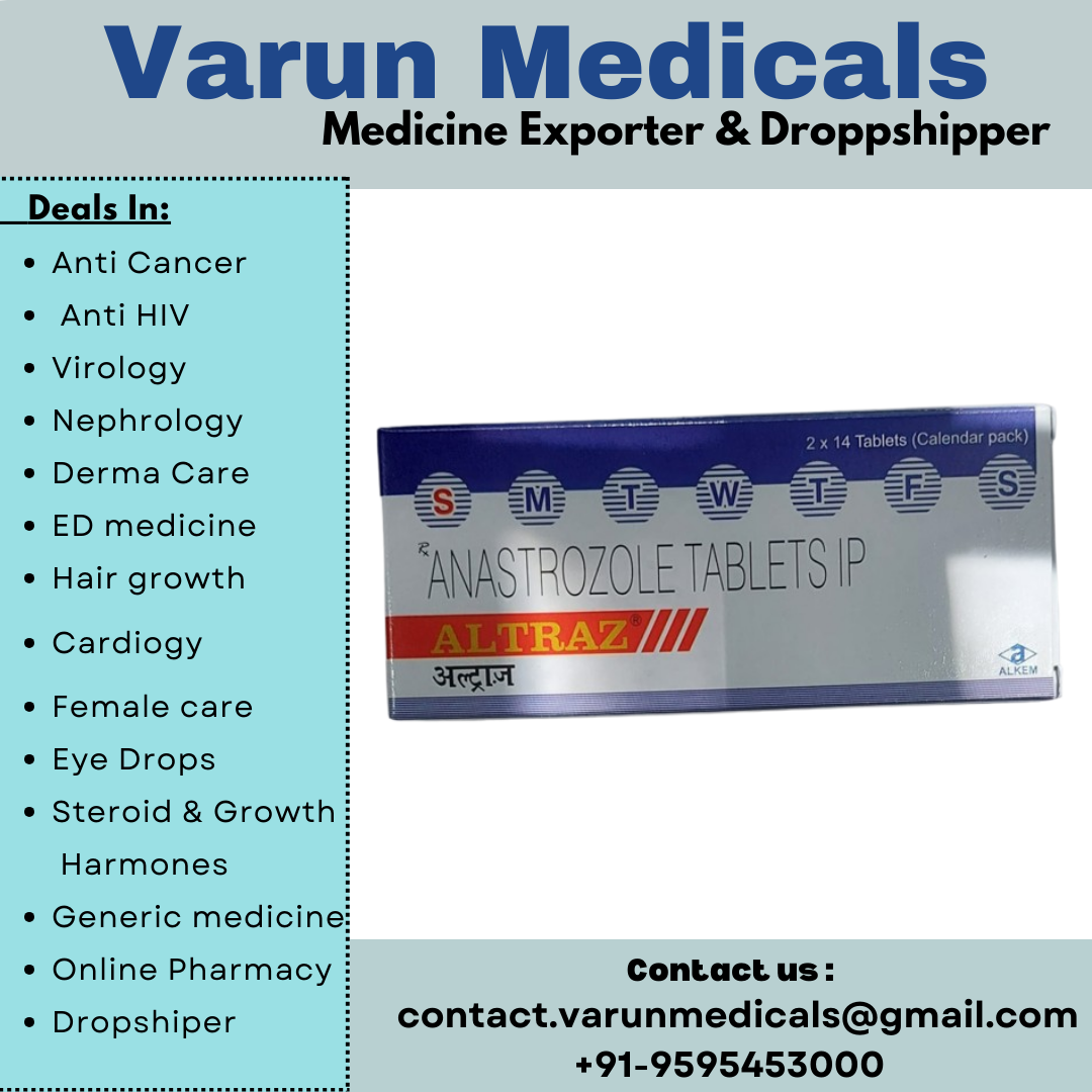 Anastrozole Tablets Supplier, Dealer, Exporter We Varun Medicals Is The Leading Supplier, Dealer, Exporter For Anastrozole Tablets In Dubai, Abu Dhabi, Sharjah, Umm Al-Quwain, Fujairah, Ajman And Ra's Al-Khaimah, Saudi Arabia, Riyadh, Tabuk, Jeddah We Have All Types Of Anastrozole Tablets Available And We Are Supplier, Dealer And Exporter In Dubai, Abu Dhabi, Sharjah, Umm Al-Quwain, Fujairah, Ajman And Ra's Al-Khaimah, Saudi Arabia, Riyadh, Tabuk, Jeddah