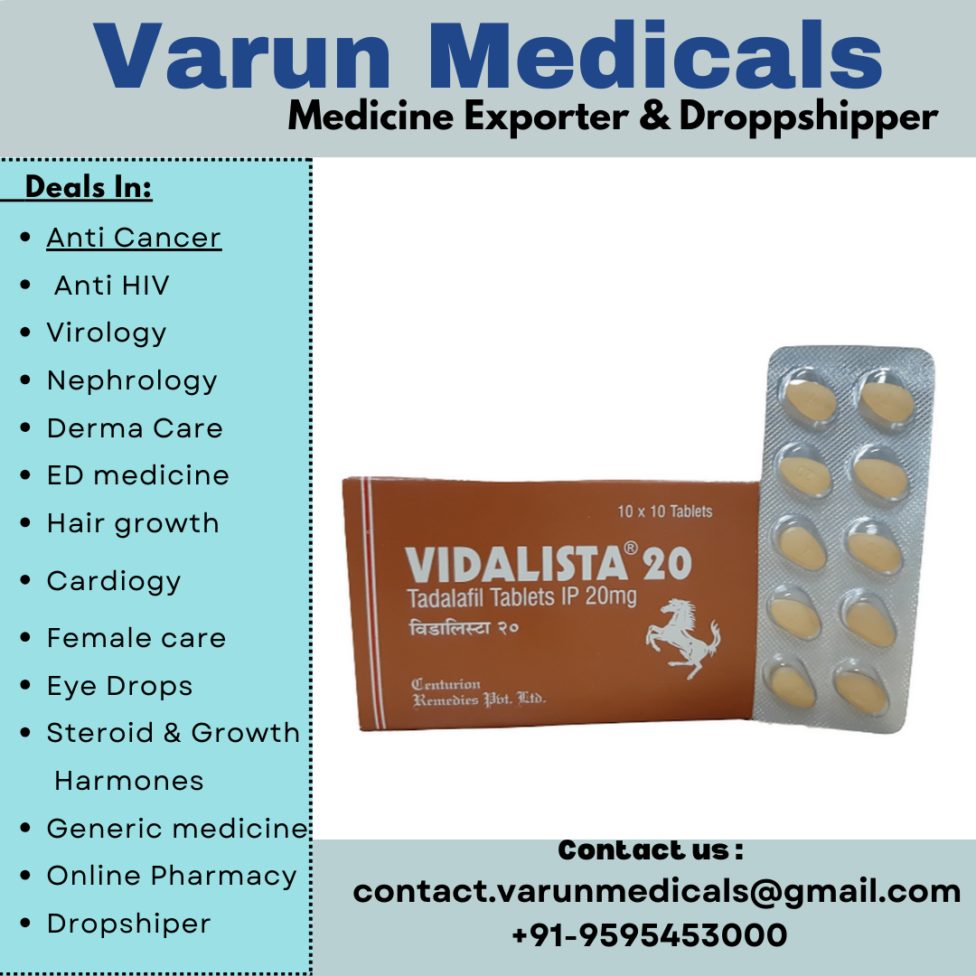 Tadalafil Tablets Supplier, Dealer, Exporter We Varun Medicals Is The Leading Supplier, Dealer, Exporter For Tadalafil Tablets In Dubai, Abu Dhabi, Sharjah, Umm Al-Quwain, Fujairah, Ajman And Ra's Al-Khaimah, Saudi Arabia We Have All Types Of Tadalafil Tablets Available And We Are Supplier, Dealer And Exporter In Dubai, Abu Dhabi, Sharjah, Umm Al-Quwain, Fujairah, Ajman And Ra's Al-Khaimah, Saudi Arabia