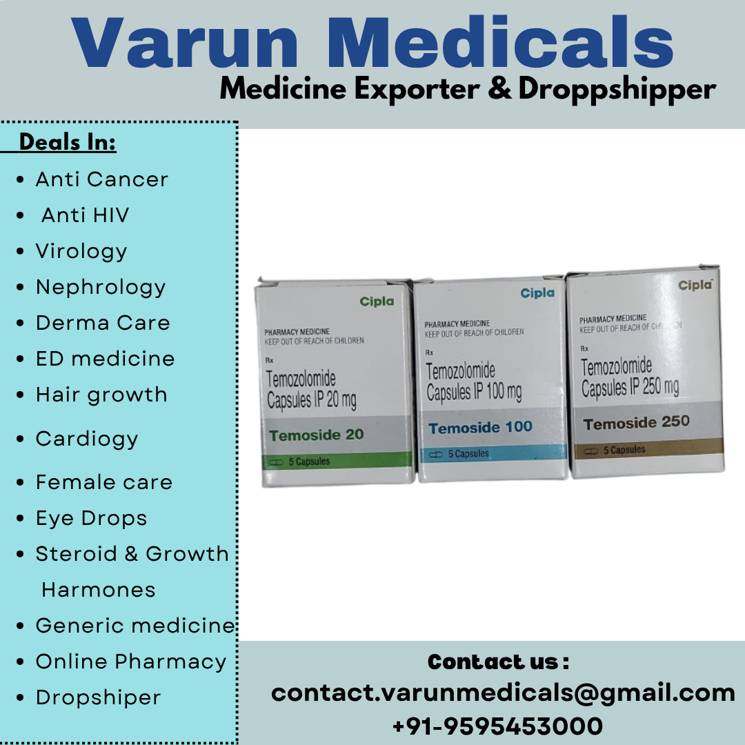 Temozolomide Capsules Supplier, Dealer, Exporter We Varun Medicals Is The Leading Supplier, Dealer, Exporter For Temozolomide Capsules In Dubai, Abu Dhabi, Sharjah, Umm Al-Quwain, Fujairah, Ajman, Ra's Al-Khaimah, Saudi Arabia, Riyadh, Tabuk, Jeddah We Have All Types Of Temozolomide Capsules Available And We Are Supplier, Dealer And Exporter In Dubai, Abu Dhabi, Sharjah, Umm Al-Quwain, Fujairah, Ajman And Ra's Al-Khaimah, Saudi Arabia, Riyadh, Tabuk, Jeddah