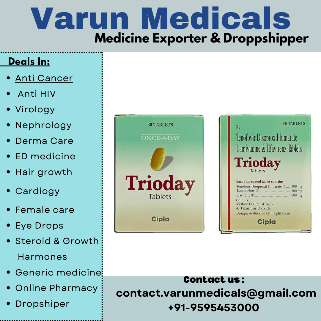 Tenofovir Disoproxil Fumarate Efavirenz And Lamivudine Tablets Supplier, Dealer And Exporter We Varun Medicals Is The Leading Supplier, Dealer, Exporter For Tenofovir Disoproxil Fumarate Efavirenz And Lamivudine Tablets In Dubai, Abu Dhabi, Sharjah, Umm Al-Quwain, Fujairah, Ajman And Ra's Al-Khaimah, Saudi Arabia We Have All Types Of Tenofovir Disoproxil Fumarate Efavirenz And Lamivudine Tablets Available And We Are Supplier, Dealer And Exporter In Dubai, Abu Dhabi, Sharjah, Umm Al-Quwain, Fujairah, Ajman And Ra's Al-Khaimah, Saudi Arabia
